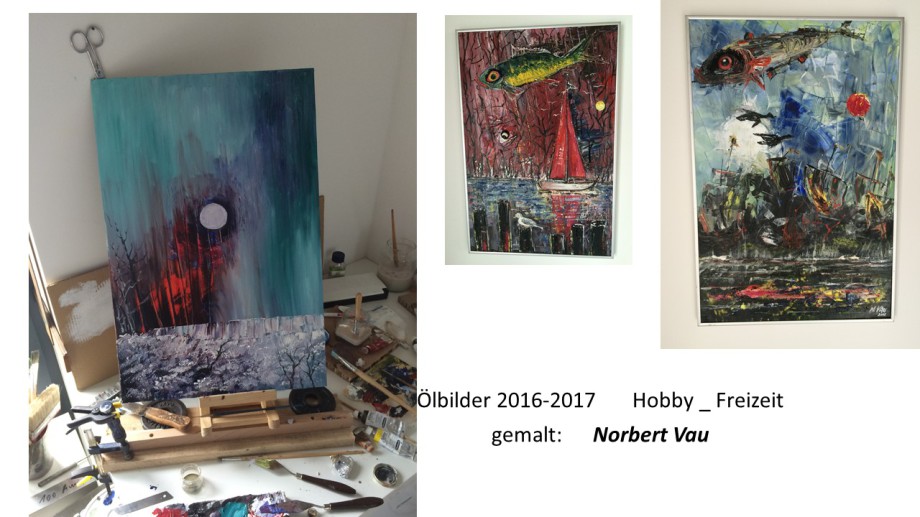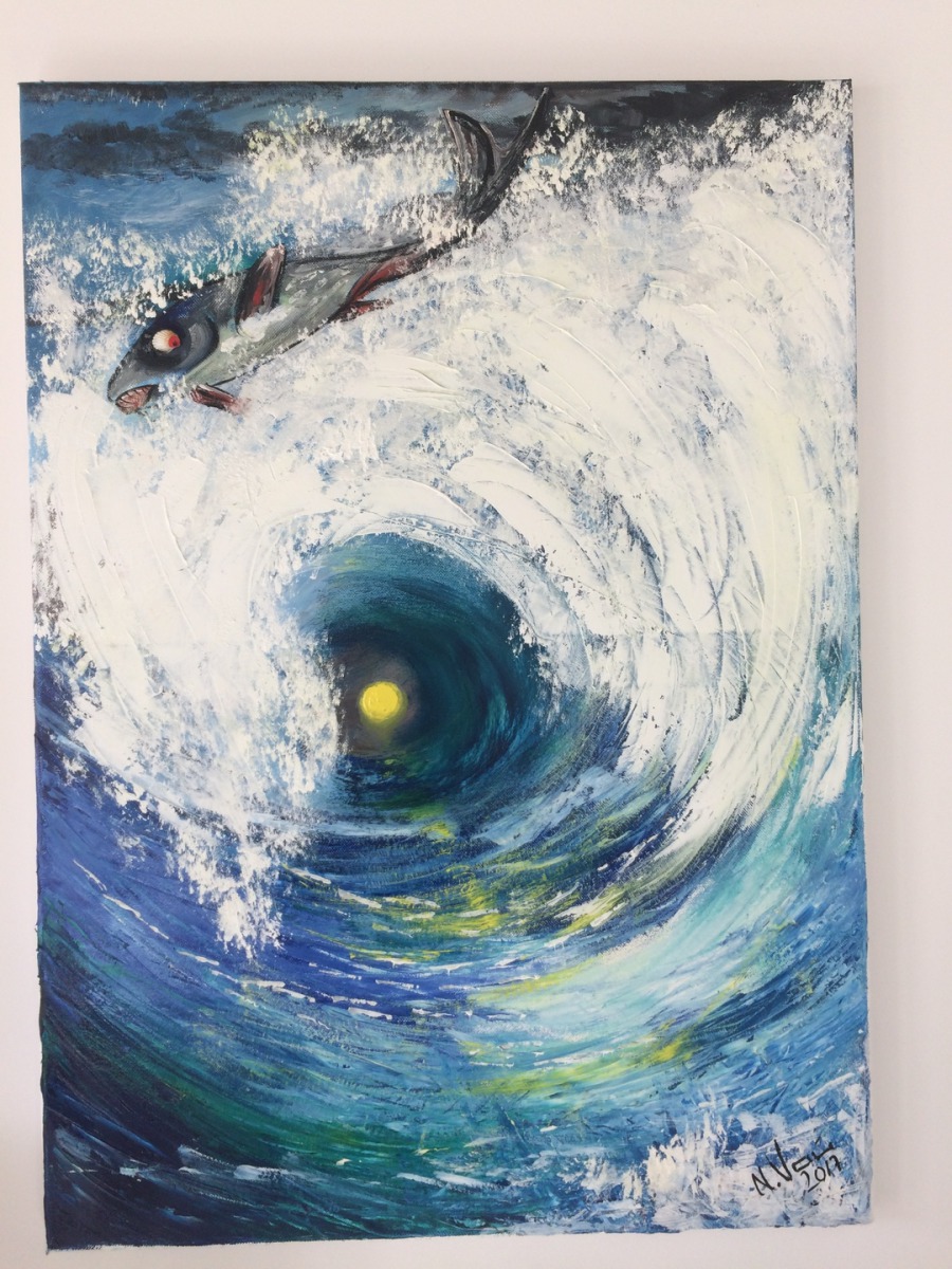 Ölbild: der Fisch in der Welle, gemalt 2017 Norbert Vau