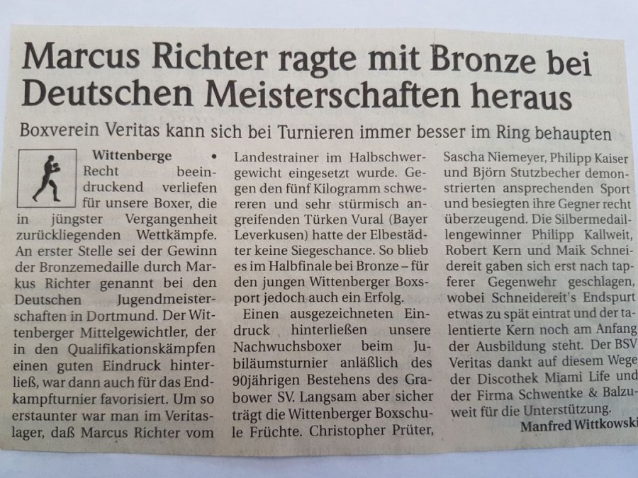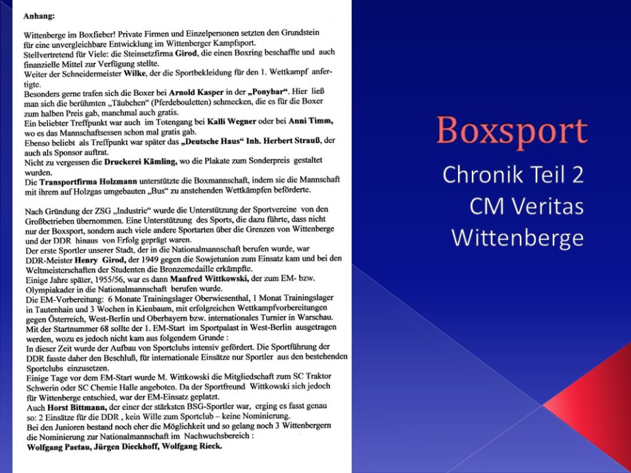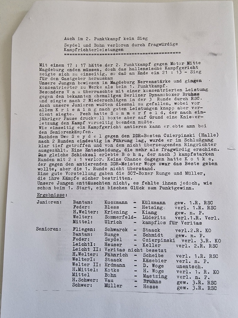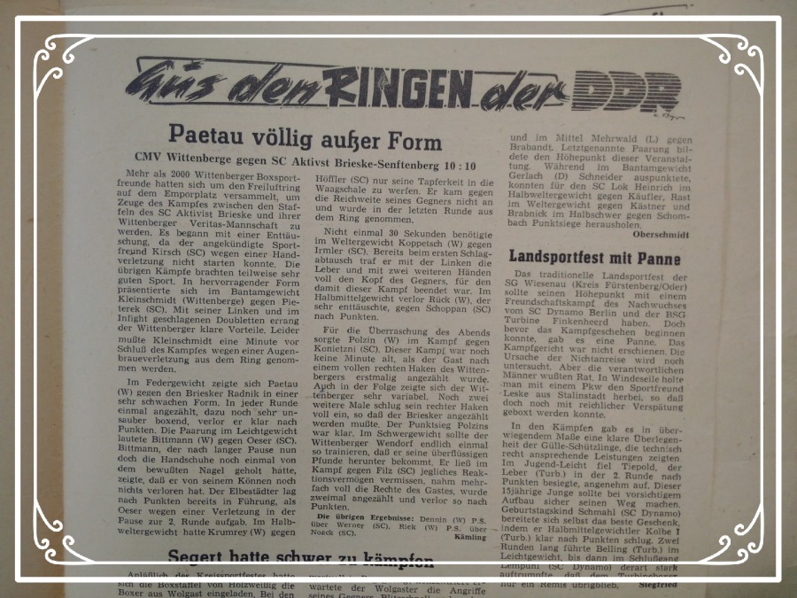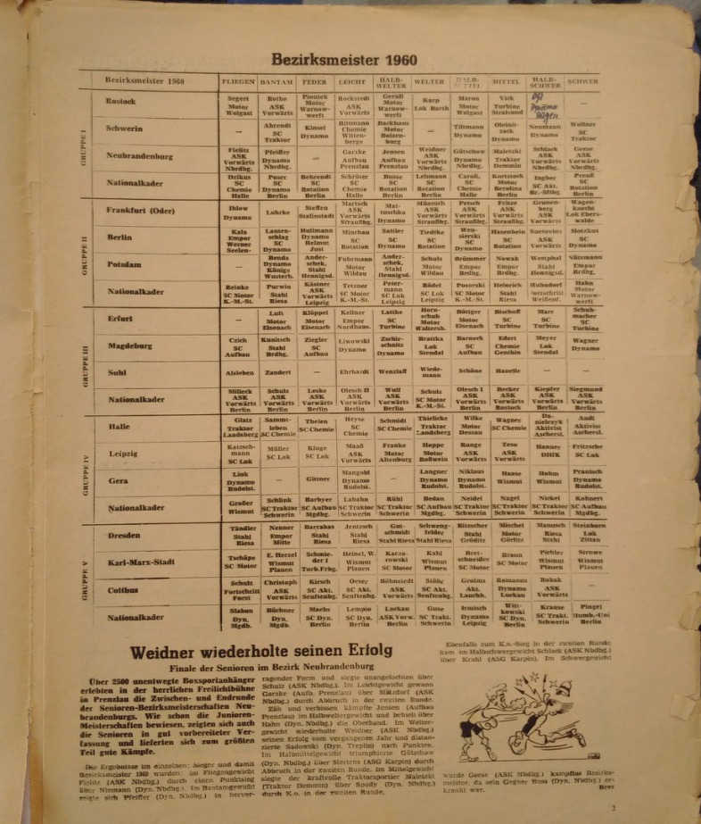 Aus der Zeitung Boxring 1961, einfach Klasse Veritas Wittenberge