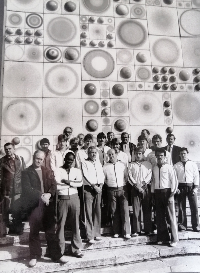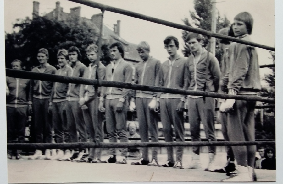 Länderkampf gegen Polen Torun 1983 in Wittenberge,ganz rechts Trainer Horst Bittmann, links daneben Norbert Vau,unbekannt Traktor,Kubaner, Jörg Schwarz,Gerd Gerdau, Harry Kapell,Rüdiger Balzuweit , Sport frei!