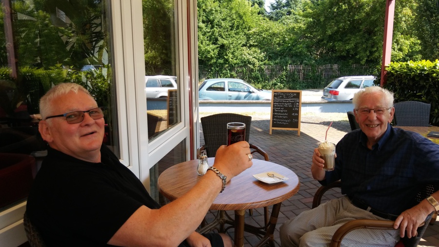 Norbert Vau mit seinem Trainer und Freund Manfred Wittkowski bei einem Kaffee und Gespräch über die Boxgeschichte Veritas, in Wittenberge am 31.5.2018