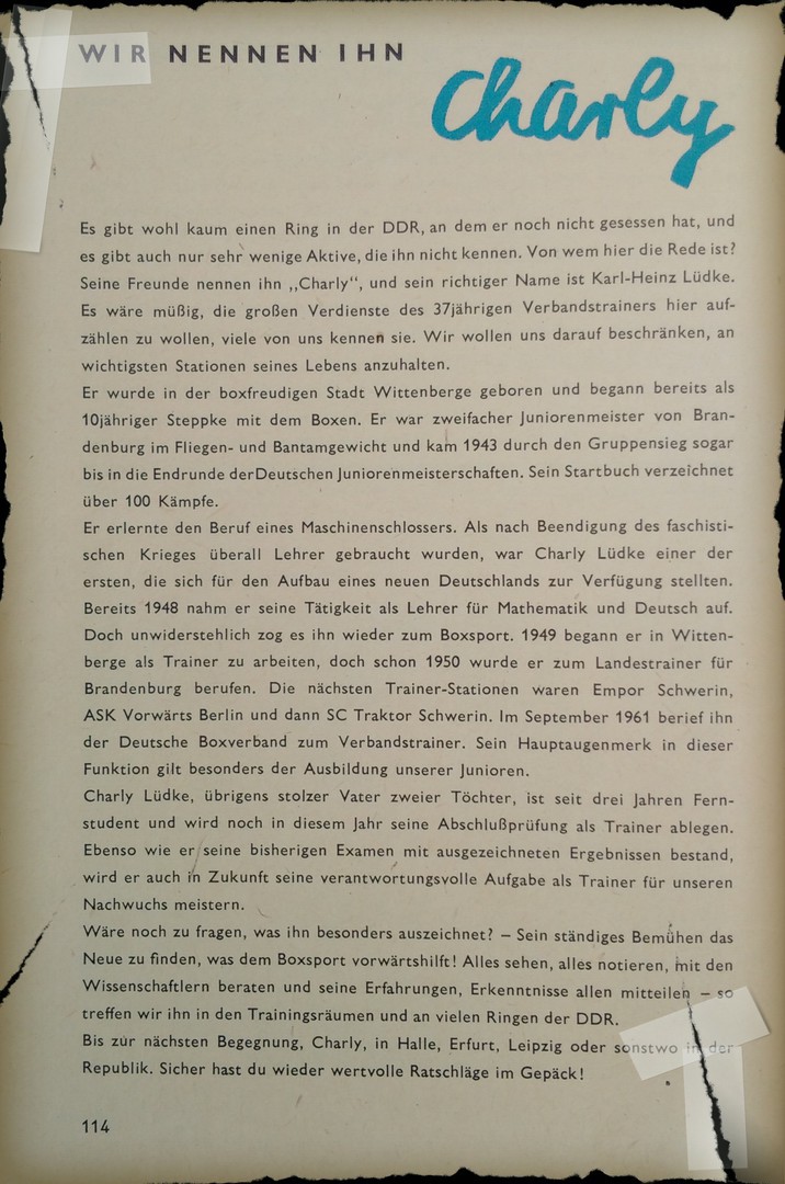 Charly Lüdke ein Boxer und Trainer aus Wiitenberge! Info aus dem Jahrbuch 1962/63 #Erstellt:N.Vau